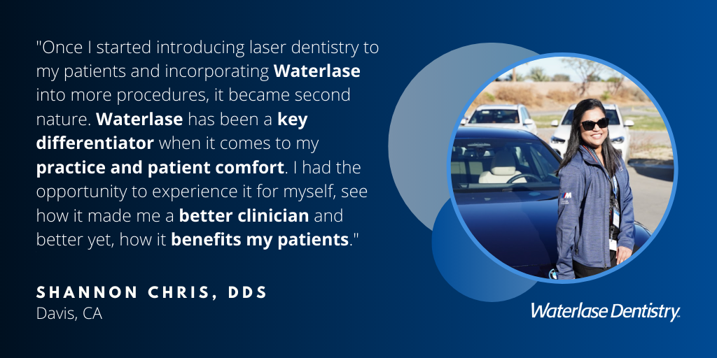 Once I started introducing laser dentistry to my patients and incorporating Waterlase into more procedures, it became second nature. Many of my patients were excited to try it because of the benefits we discussed and even the ones that were a bit hesitant were open to the idea if it meant less pain, less invasive procedures, and better results for them.